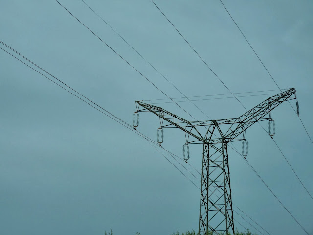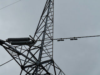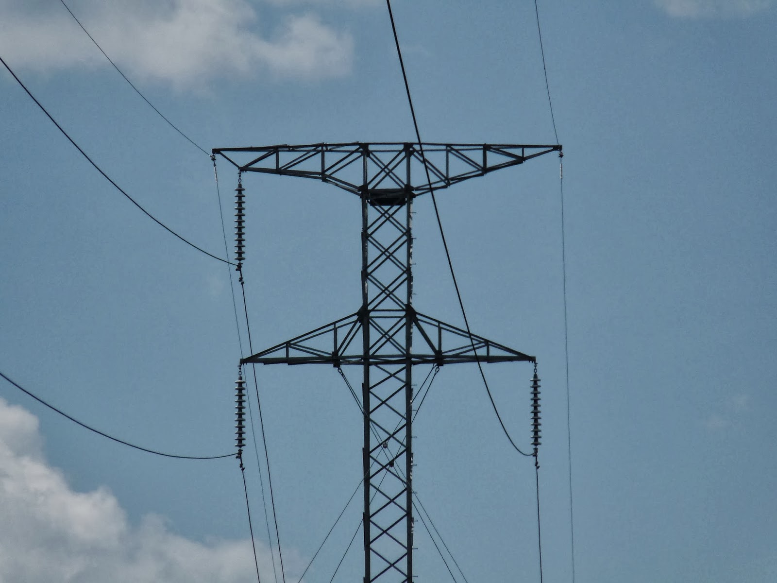 Croisement 220KV / 110KV (le petit pylone 110KV en dessous est sous la nappe)
