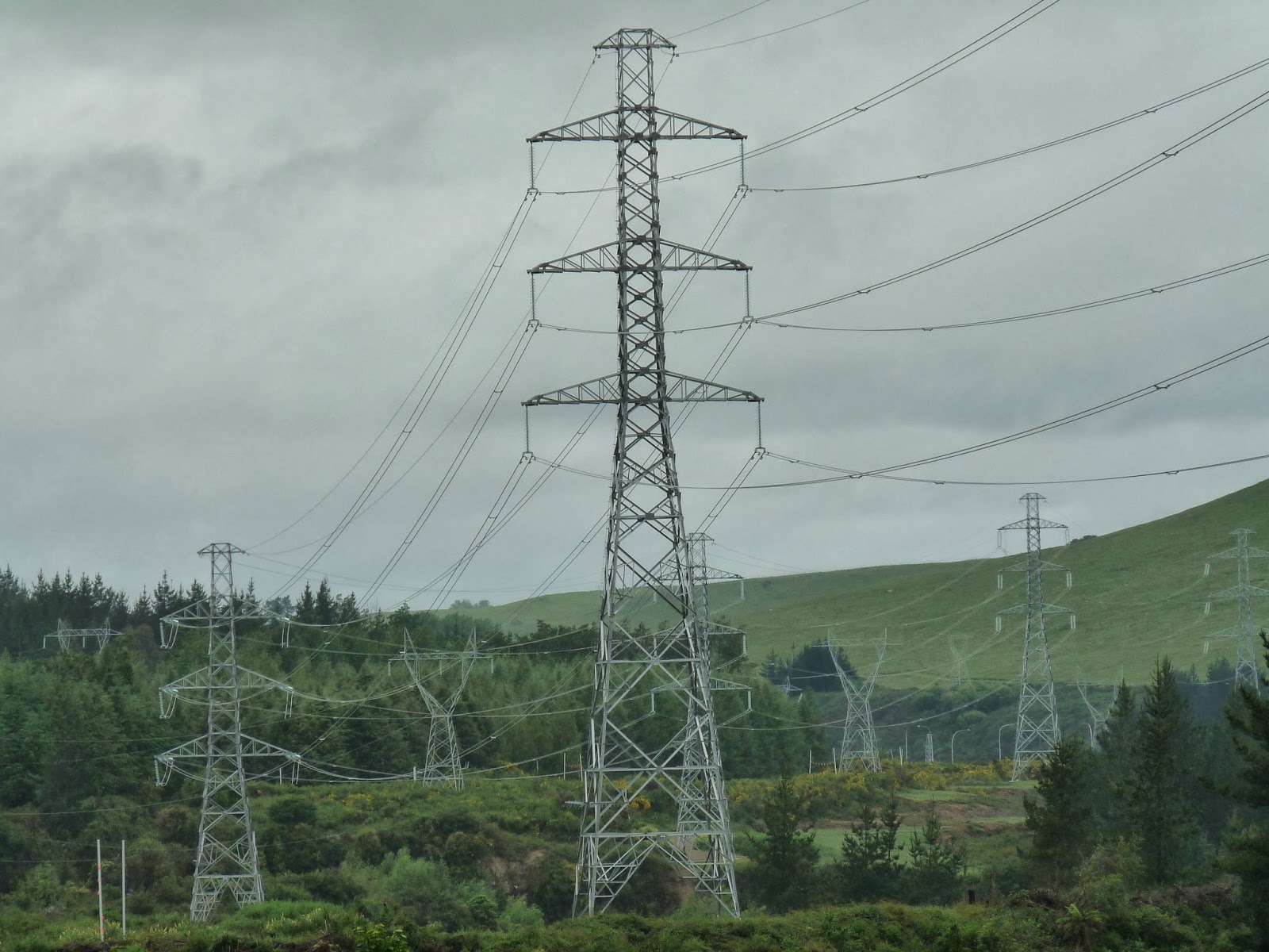 Rotorua - simple et double terne 220KV (depuis production géothermique). A noter les faisceaux doubles